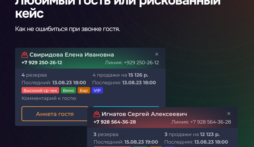 Ведь именно карты лояльности или электронные карты Wallet – основной источник сбора информации о клиентах. При регистрации вы получаете все необходимые сведения о гостях: ФИО, дату рождения, телефон и почту, информацию о детях и их дату рождения. Но самое главное – что они заказывают в заведении и как часто в нём бывают. Эти данные позволяют выстроить грамотную коммуникацию, снимать аналитику и влиять на посещаемость.